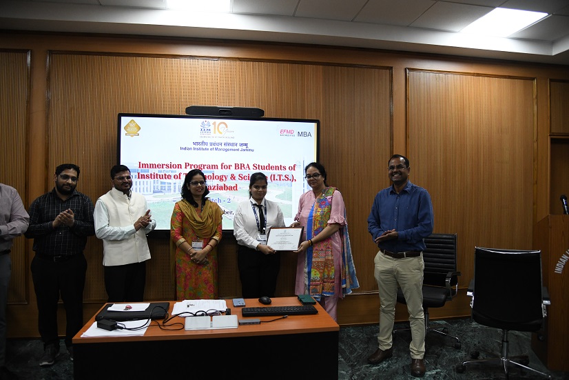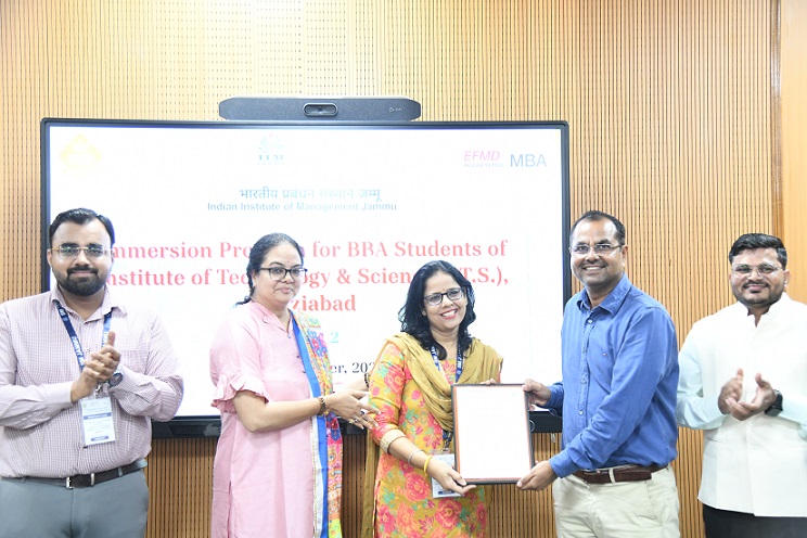 Our 25 bright BBA & BCA students have successfully completed a transformative 5-Day Residential Immersion Program at IIM Jammu – an inspiring journey of learning, leadership, and personal growth. After going through multiple layers of learning, students showcased their knowledge through final project presentations and were awarded certificates of achievement. Faculty members were also recognized for their dedication, guidance, and coordination throughout the program. A heartfelt thanks to the Management of I.T.S, Mohan Nagar, Ghaziabad for their vision and unwavering support in making this initiative a grand success. Dr. Nancy Sharma, Principal – I.T.S UG Campus, also congratulated the achievers and appreciated their hard work and commitment. This milestone, under the initiative of our Academic Outreach Program, reaffirms our commitment to providing experiential learning opportunities and shaping the leaders of tomorrow.