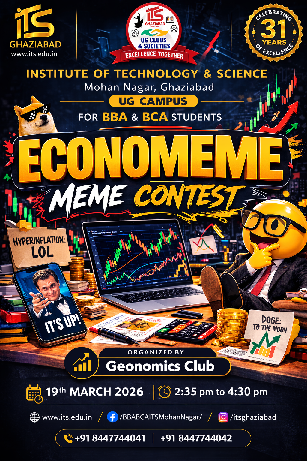The Geonomics Club is going to organize ECONOMEME: Meme Contest 2026 on 19th March 2026 (2:35 PM – 4:30 PM) for BBA and BCA students. The event will encourage participants to showcase their creativity by creating memes on economic themes like inflation, stock markets, and cryptocurrency. Attractive prizes will be awarded to the winners.