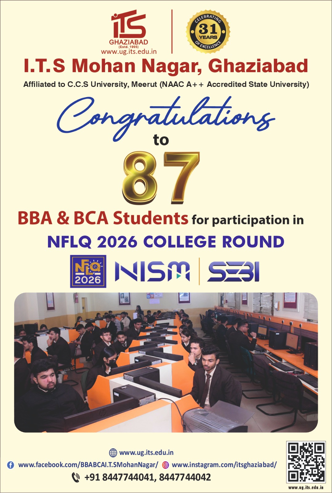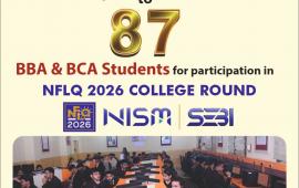A total of 87 BBA & BCA students qualified for the NFLQ 2026 College Round, organized by National Institute of Securities Markets and Securities and Exchange Board of India.