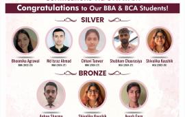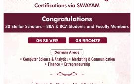 BBA and BCA students successfully completed certification courses from Indian Institute of Management Bangalore via SWAYAM, securing Silver and Bronze categories.