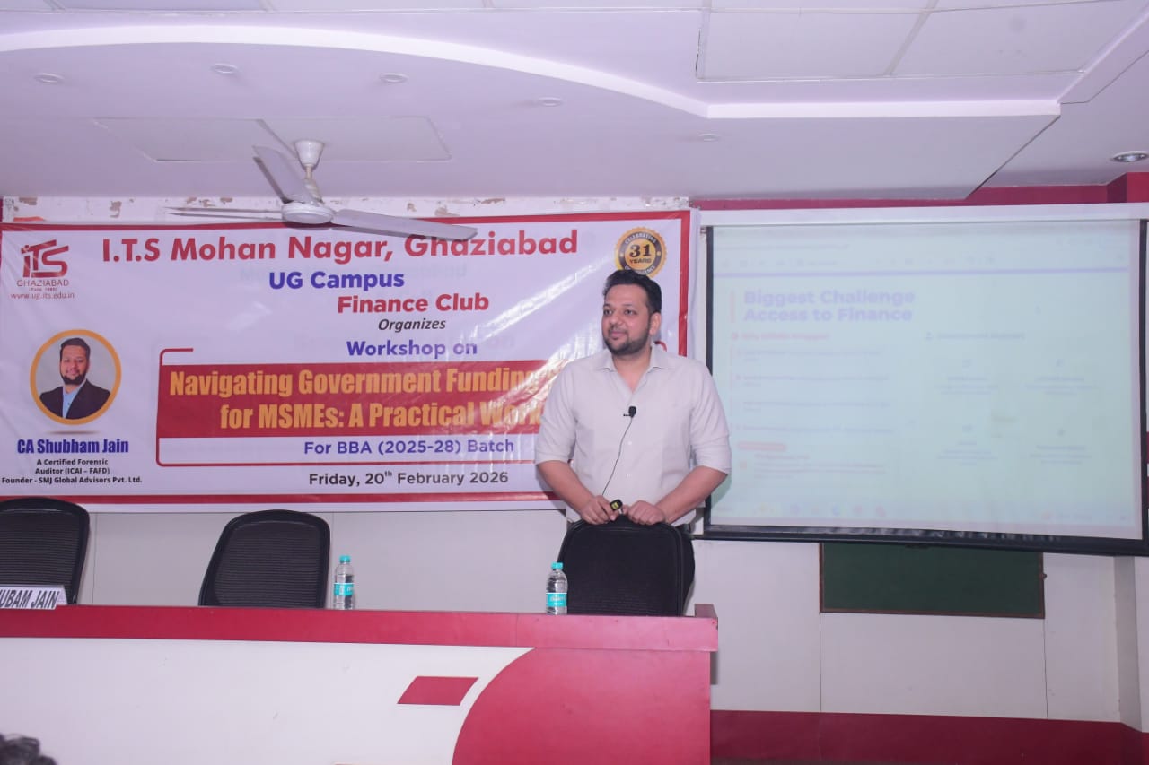 The objective of the workshop was to provide students with a clear understanding of the MSME ecosystem in India and to create awareness about various Government funding schemes available for Micro, Small and Medium Enterprises (MSMEs). The session was conducted by CA Shubham Jain, A Certified Forensic Auditor (ICAI – FAFD) & Founder – SMJ Global Advisors Pvt. Ltd. He is having experience of 8= years. He delivered the workshop in a highly practical, engaging and interactive manner. During the session, the speaker explained the meaning and classification of MSMEs and highlighted their significant contribution to GDP, employment generation and exports. He also discussed the major challenges faced by MSMEs in accessing finance and emphasized the need for government intervention in this sector. Students were introduced to different types of financial support such as term loans, working capital finance, credit guarantee schemes, subsidies and incentives. The role of financial institutions like SIDBI, NABARD, public and private sector banks and NBFCs in supporting MSME financing was explained in a simplified manner. A detailed discussion was conducted on important government schemes including Pradhan Mantri Mudra Yojana (PMMY) with its Shishu, Kishore and Tarun categories, Stand-Up India Scheme, Credit Guarantee Fund Trust for Micro and Small Enterprises (CGTMSE), Startup India Initiative and Prime Minister’s Employment Generation Programme (PMEGP). The speaker clearly explained eligibility criteria, required documentation such as Udyam Registration, PAN, Aadhaar, business plans and bank statements, and demonstrated the step-by-step application process through digital portals. Special emphasis was given to common mistakes applicants should avoid while applying for government schemes. The session also included a Quiz and practical case studies where students were encouraged to match business ideas with suitable funding schemes, making the learning experience more application-based. The interactive question-and-answer segment allowed students to clarify their doubts and gain confidence in understanding MSME finance options in India. Overall, the workshop significantly enhanced awareness, financial literacy and advisory skills among participants and equipped them with practical knowledge to become future entrepreneurs and selection of appropriate government funding options. The Finance Club coordinators Prof. Rama Mishra and Dr. Sandeep Garg expresses sincere gratitude to CA Shubham Jain for conducting such an insightful and impactful session.
