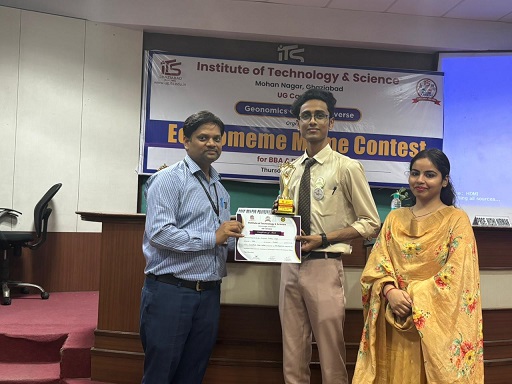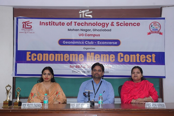 The Geonomics Club organized “EconoMeme: Meme Contest” with the objective of encouraging students to express economic and business concepts through humor, creativity, and digital storytelling. The activity aimed to enhance conceptual understanding, critical thinking, and communication skills by allowing students to present real-world economic issues, market trends, policies, and consumer behavior in the form of engaging and relatable memes. The event provided a dynamic platform where learning was seamlessly blended with creativity and wit. The competition witnessed enthusiastic participation from students across different courses and years. Participants showcased their originality and insight by designing innovative memes that reflected a strong grasp of economic concepts while maintaining humor and relatability. The entries demonstrated creativity, relevance, and clarity of thought, making the event both intellectually enriching and entertaining. The participants were evaluated by internal judges and faculty coordinators on parameters such as Relevance to the Theme, Creativity and Originality, Clarity and message delivery, Humour and Presentation, Visual appeal and engagement Potential.The event successfully fostered academic engagement, digital creativity, and confidence among students, while promoting innovative and enjoyable approaches to learning economics. Winner details are as follows:- Abhay Pundir (BBA 1 st year) secured 1 st position, Ashutosh Pratap Singh (BBA 3 rd year) secured 2nd Position and Vanshika (BBA 1 st year) got 3rd position