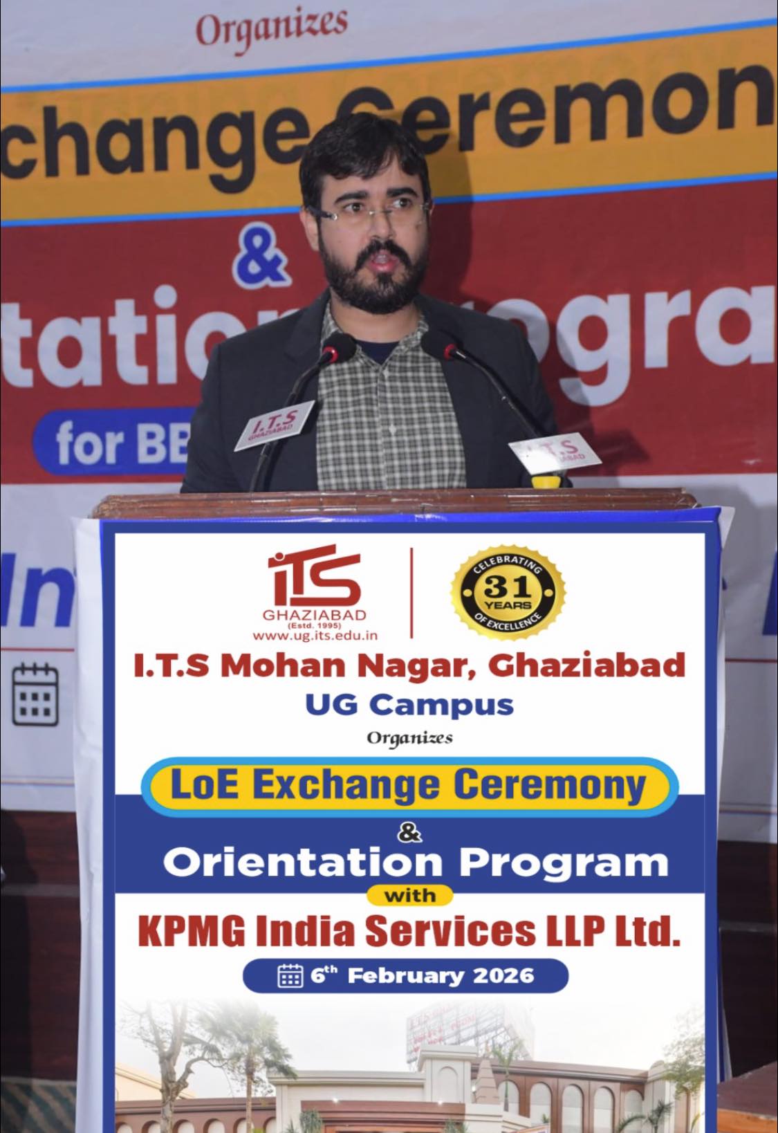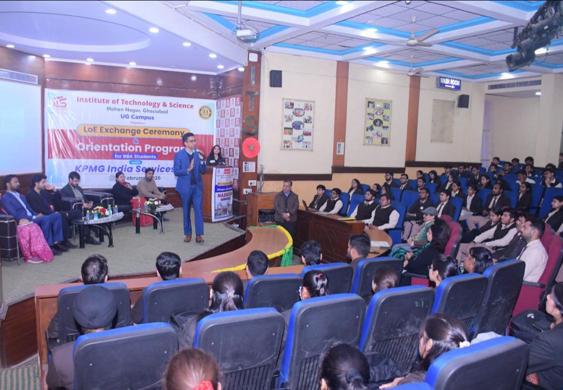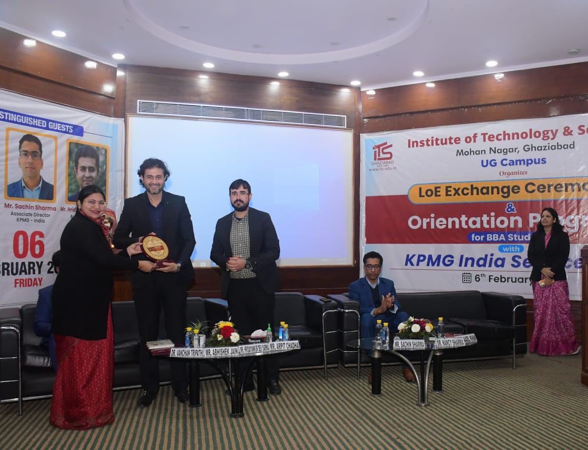The LoE exchange marked the formal launch of this academic–industry partnership, focused on enhancing students’ employability and professional skills. The event was graced by Mr. Arpit Chadha, Vice Chairman, I.T.S – The Education Group; Mr. Sachin Sharma and Mr. Hridayankur Dev Sarma, Associate Directors, KPMG – India; and Dr. Nancy Sharma, Principal, I.T.S (UG Campus). The session provided key insights into industry expectations and future-ready skills, with active student participation. The collaboration reinforces the institute’s strong academia–industry connect.
