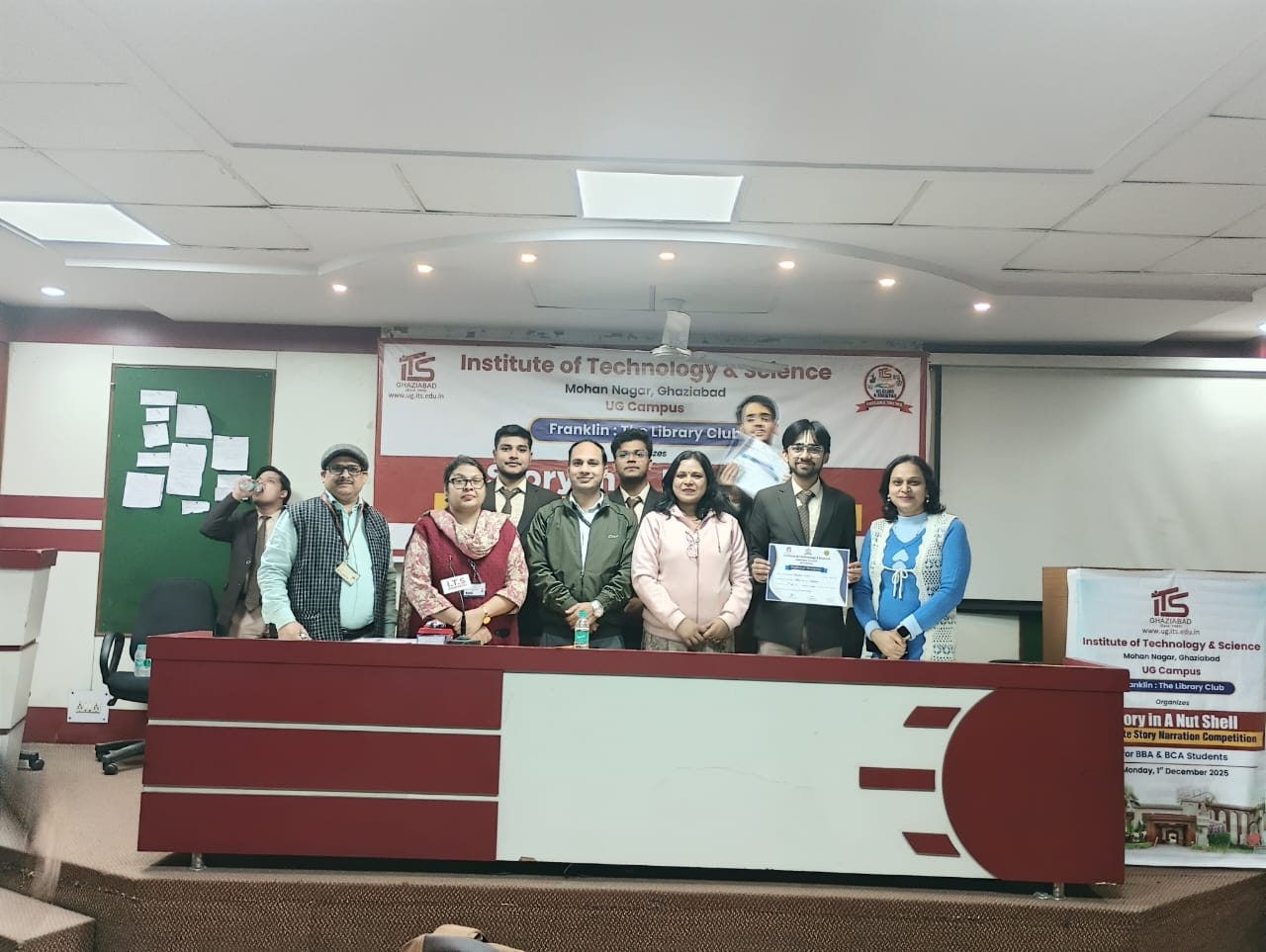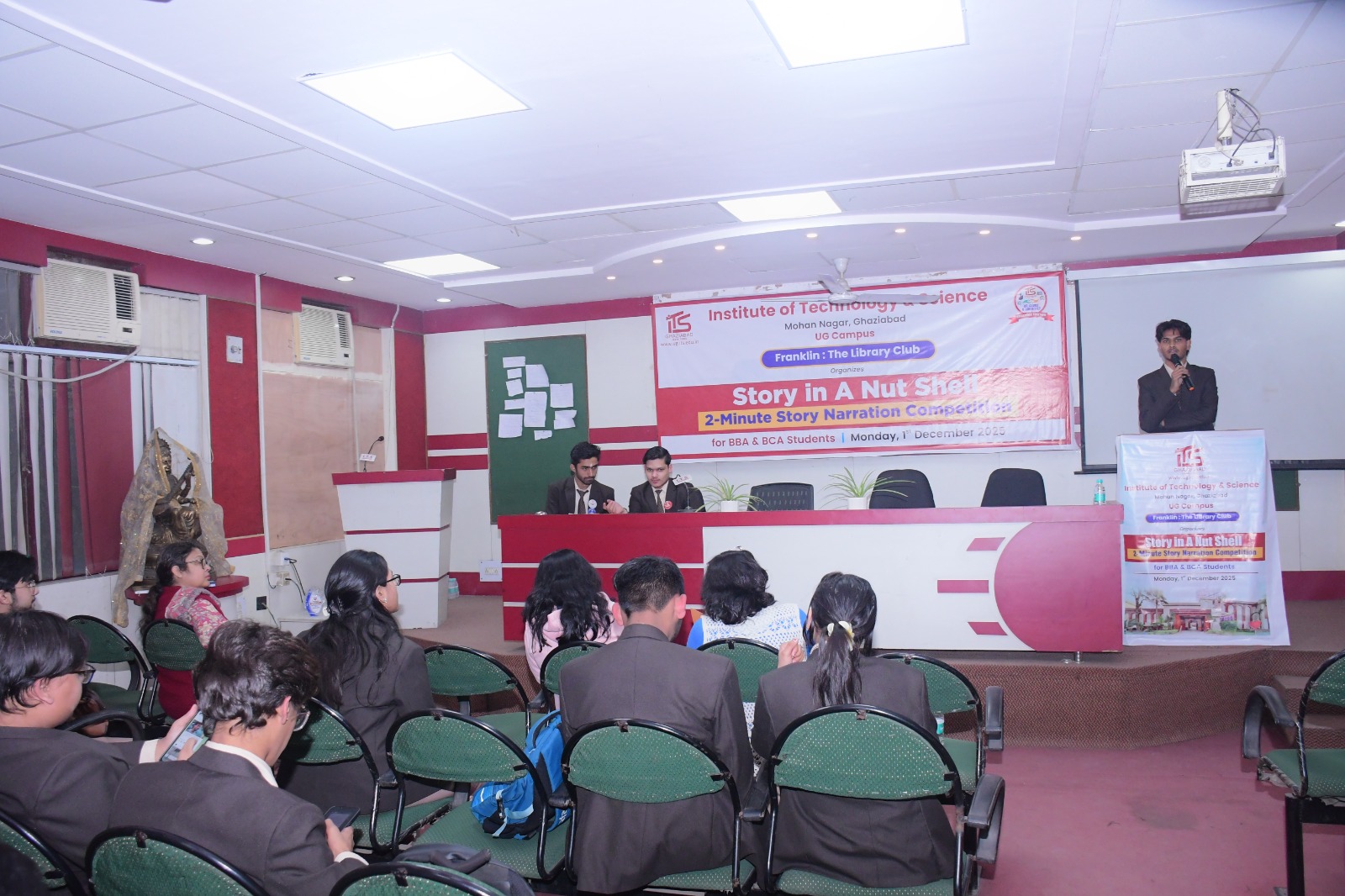 Objective: The objective of the Story in a Nut Shell: 2-Minute Story Narration Competition is to enhance students’ creativity, imagination, and storytelling skills by encouraging them to narrate short and meaningful stories within a limited time. It aims to develop confidence, clarity of expression, and effective communication through concise and engaging narration. Description: Total 22 students participated in the event from all years of BBA and BCA. The “Story in a Nut Shell” competition is an interactive activity where students narrated short stories within a 2-minute limit. Judged on content, clarity, expression, and delivery. WINNERS DETAILS: Best Narrator award: Hridya Hari BCA 2nd year Section D Best expression award: Abhijeet Kumar BCA 2nd year Section D Best content award: Khushi Chaudhary BBA 1st year Section F Audience choice award: Alisha khan BCA 1st year Section C