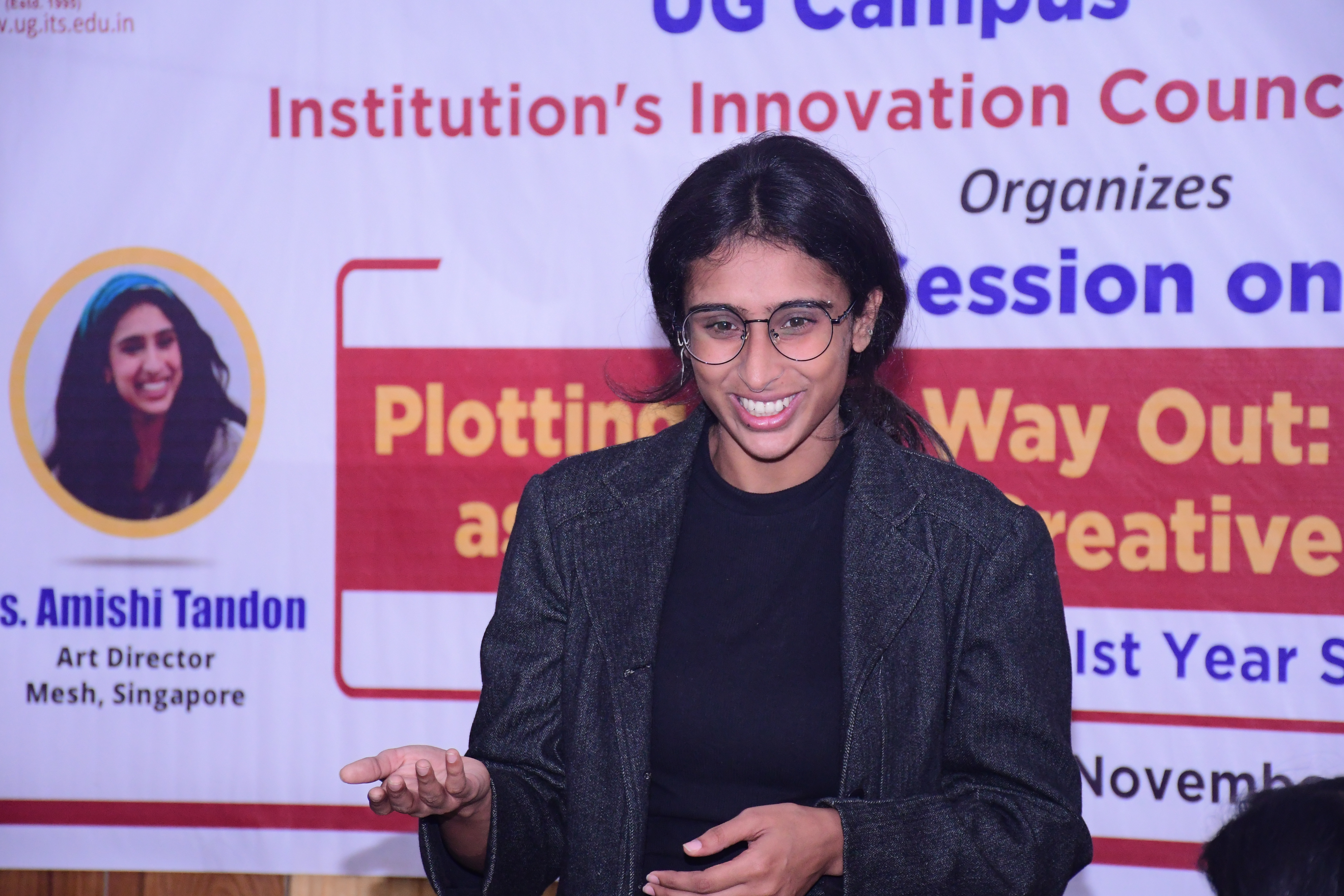 The objective of the event is to inspire students to integrate creativity with structured communication. This initiative reflects the institute’s continuous commitment to fostering innovation-driven learning. The session is expected to encourage young learners to explore storytelling as a strategic tool for generating effective solutions. Description: The Institution’s Innovation Council (IIC) at I.T.S Mohan Nagar, Ghaziabad (UG Campus) organized an engaging session titled “Plotting Your Way Out: Storytelling as a Tool for Creative Solutions.” This insightful program was specially curated for the BBA and BCA first-year students to enhance their creative thinking and problem-solving abilities. The session was delivered by the invited resource person, Ms. Amishi Tandon, Art Director at Mesh, Singapore. With her professional expertise in creative design and narrative thinking, she provided students with practical approaches to using storytelling in real-world contexts. Learning Outcomes: The students learned how to transform their passions into purposeful and innovative ideas. They gained knowledge of ideation, design thinking, creative thinking, critical thinking and understanding of how to identify opportunities and solve problems effectively.The session emphasized the importance of self-discipline, focus, and removing negative emotions like anger and ego. Overall, the students were motivated, inspired, and ready to think creatively with a clear sense of purpose.
