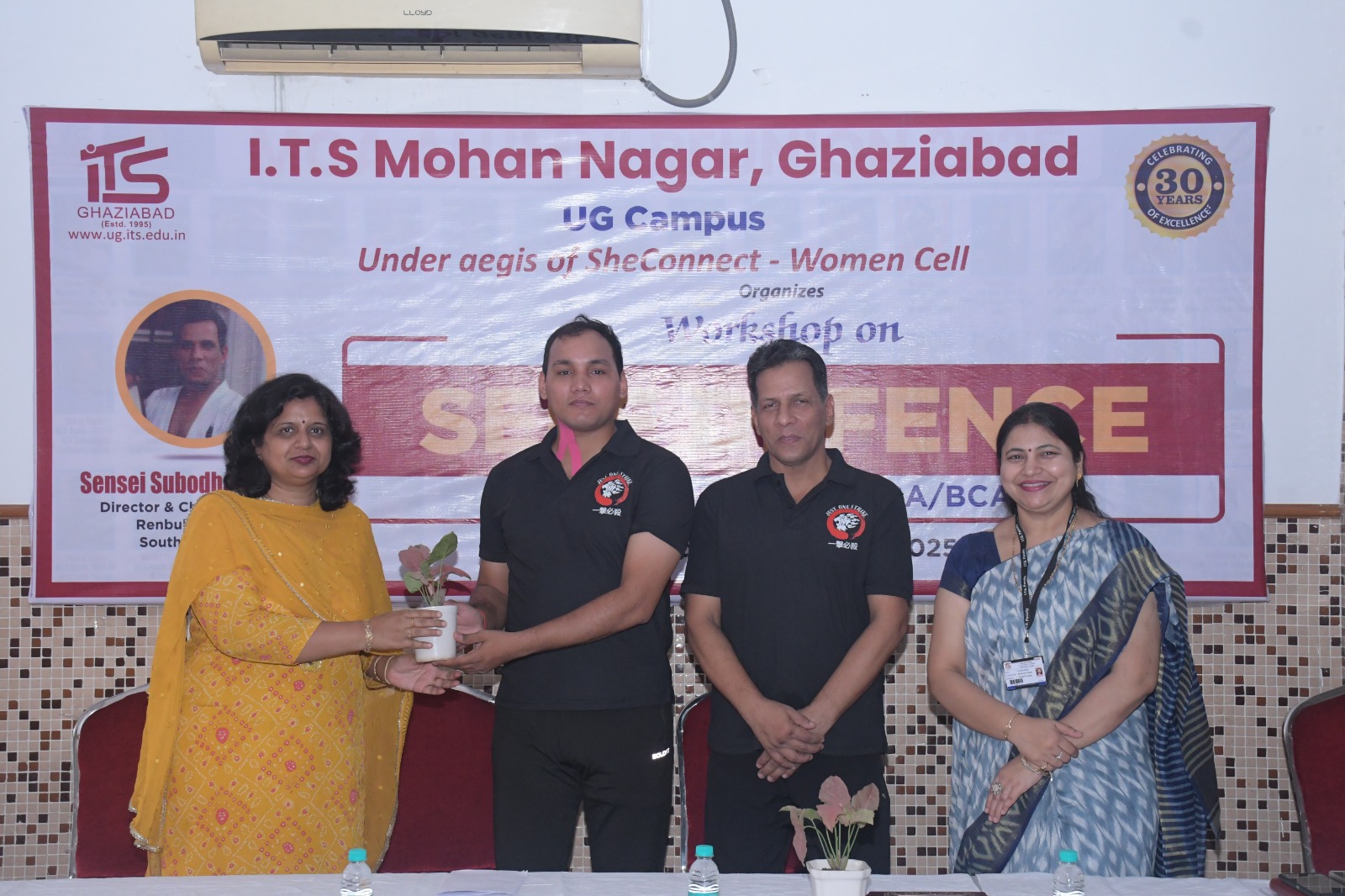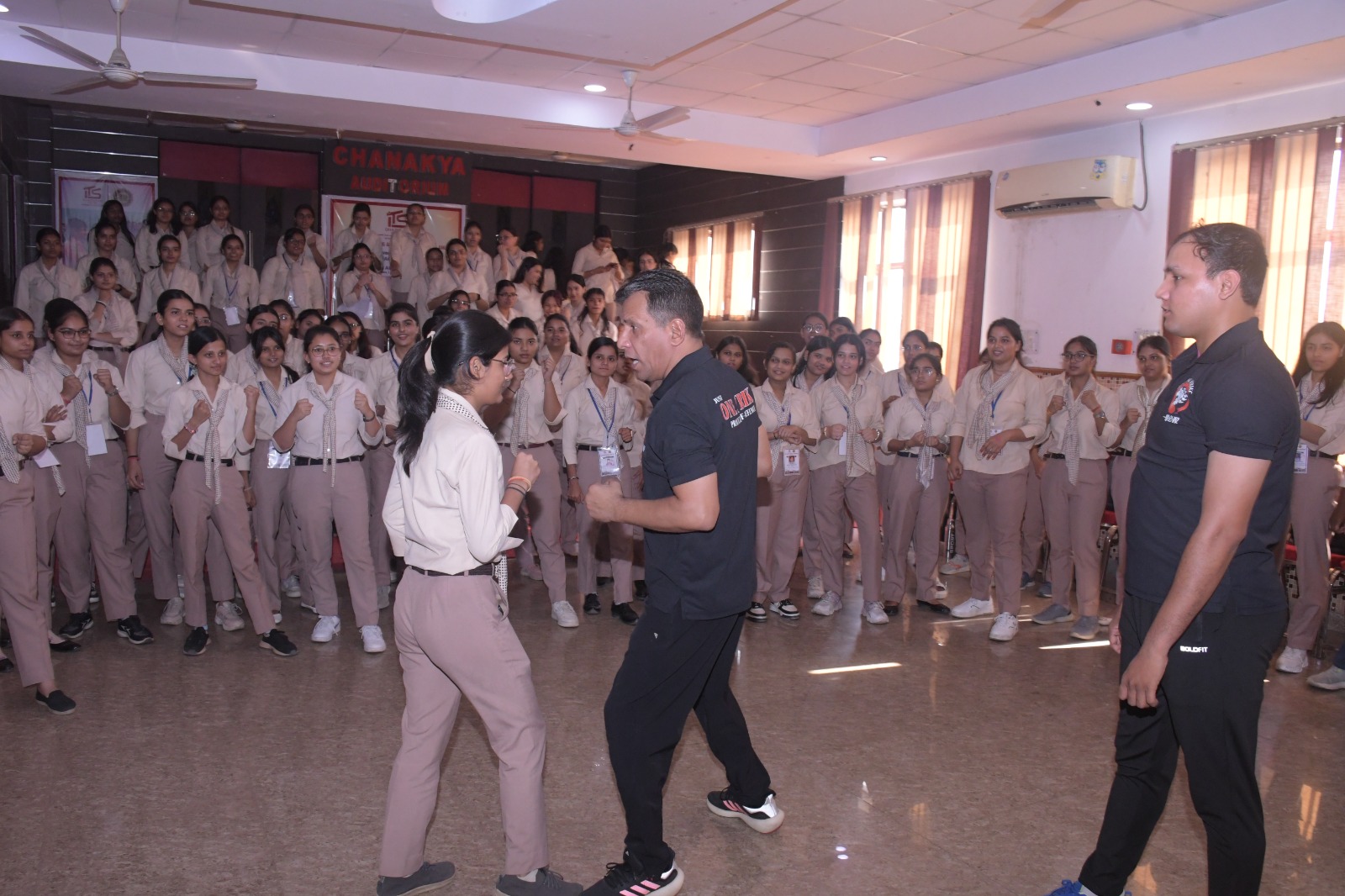 The session was conducted by Sensei Subodha Dhiman, Director and Chief Instructor of Renbukai Karate in South-East Asia, who has trained elite forces including the NSG Commandos, Indian Navy, and Delhi Police. With his vast experience and engaging teaching style, Mr. Dhiman demonstrated practical self-defence techniques designed to help young women protect themselves in real-life situations. The workshop included live demonstrations, guided practice, and hands-on participation where students learned how to react swiftly and effectively to various forms of physical confrontation and harassment. The techniques emphasized awareness, alertness, and confidence, empowering participants to stay safe in different environments. The event received an overwhelming response from the students, who enthusiastically participated and appreciated the valuable lessons. It successfully promoted physical confidence, mental strength, and the importance of self-protection as a life skill.