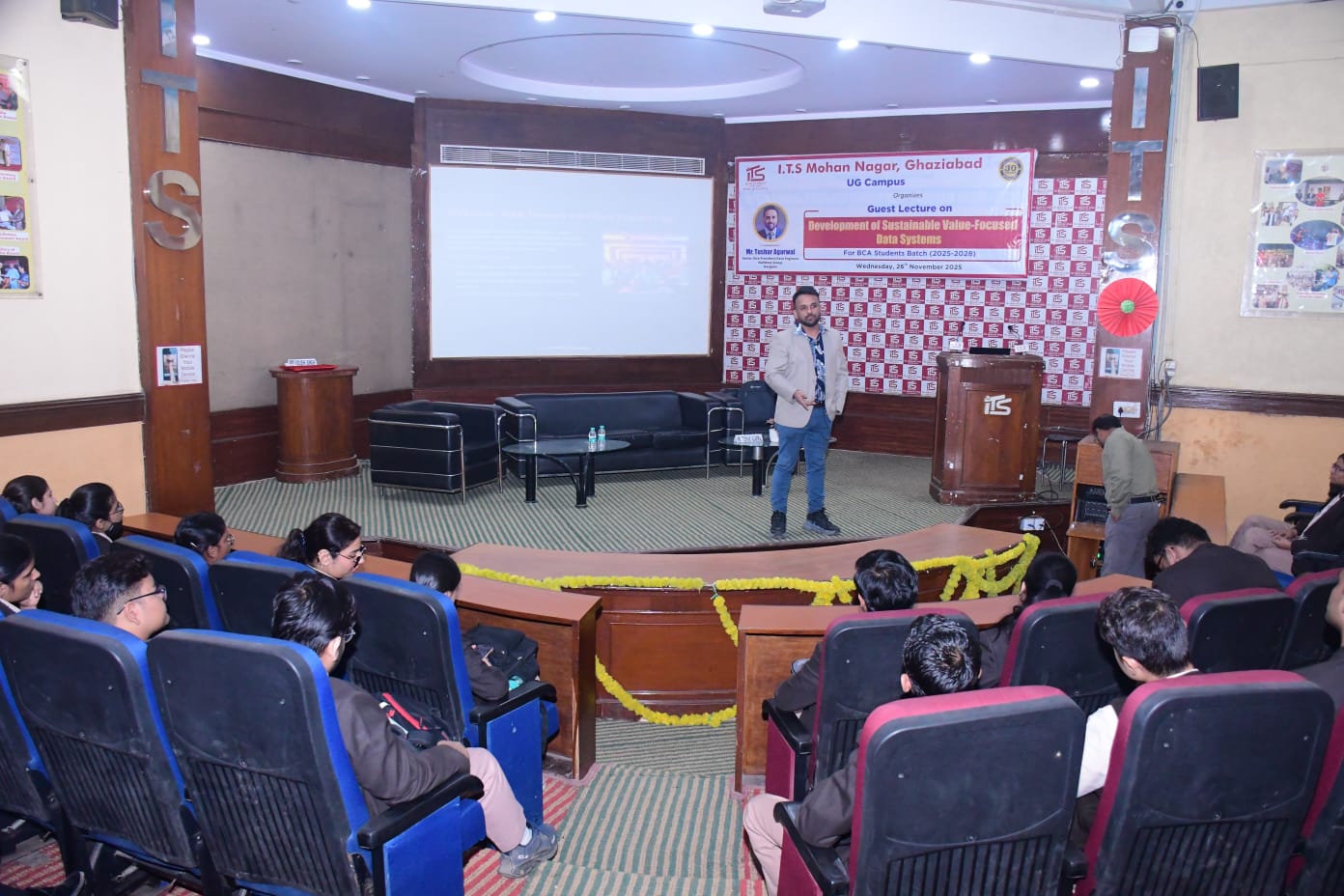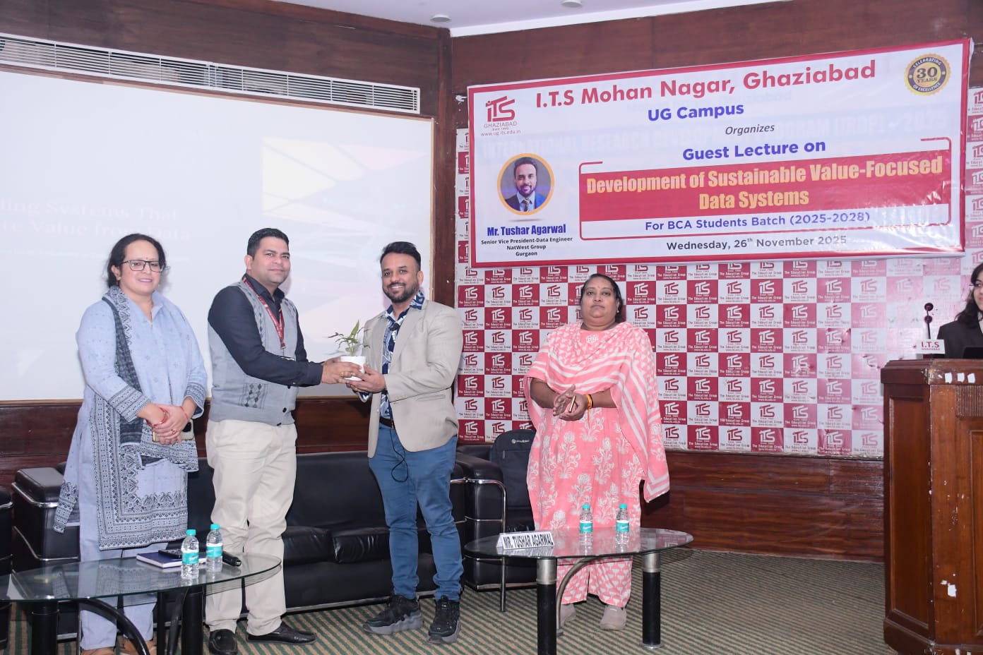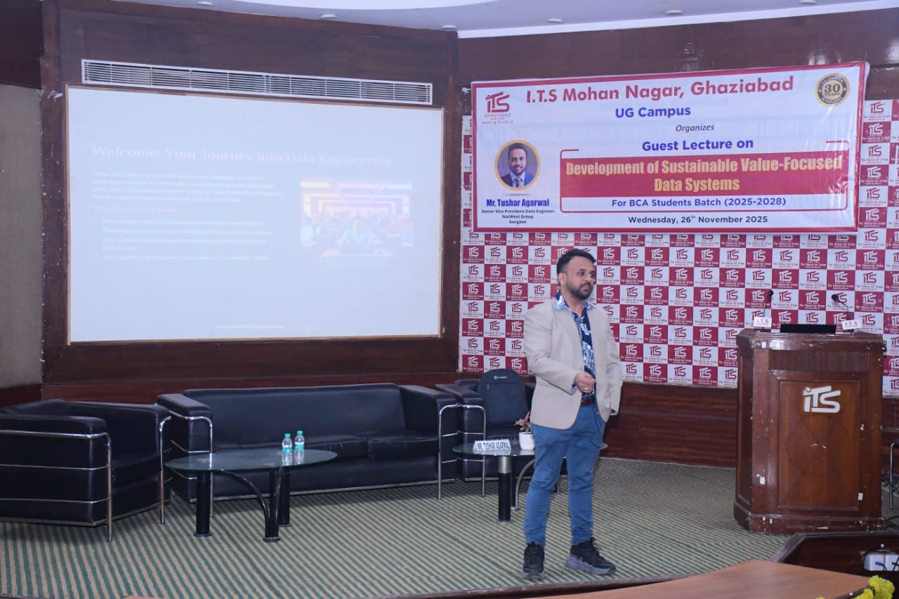 The objective behind this guest lecture was to give an insight to students - how to create data systems that drive business value while ensuring long-term sustainability and minimizing environmental impact. The session on Sustainable, Value-Focused Data Systems, led by Mr. Tushar Agarwal, Senior Vice President at NatWest Group, provided valuable insights into designing and implementing data systems that drive business value while ensuring sustainability. During the session Mr. Tushar guided the students about four cornerstone of effective data systems:1. *Value-Driven Approach*: Focus on creating data systems that deliver actionable insights and drive business outcomes.2. *Sustainability*: Prioritize data management practices that minimize environmental impact and ensure long-term viability.3. *Data Governance*: Establish robust governance frameworks to ensure data quality, security, and compliance.4. *Collaboration*: Foster collaboration across functions to ensure data systems meet business needs.