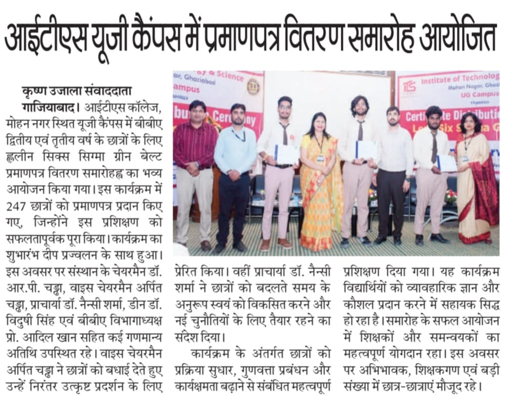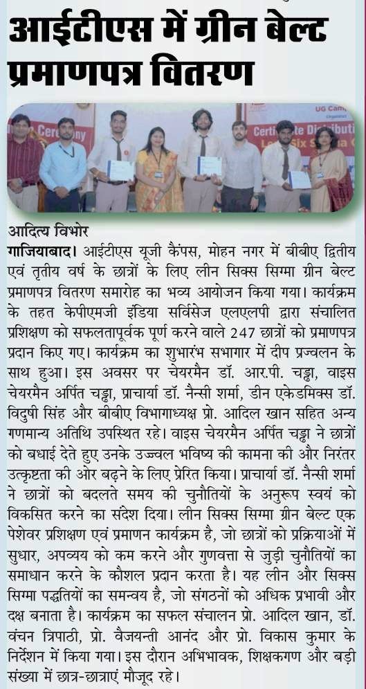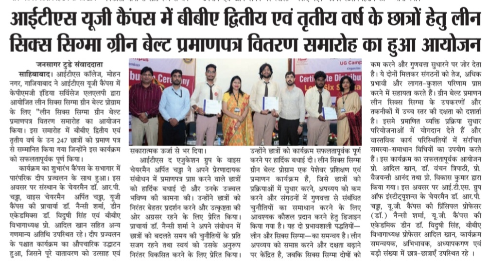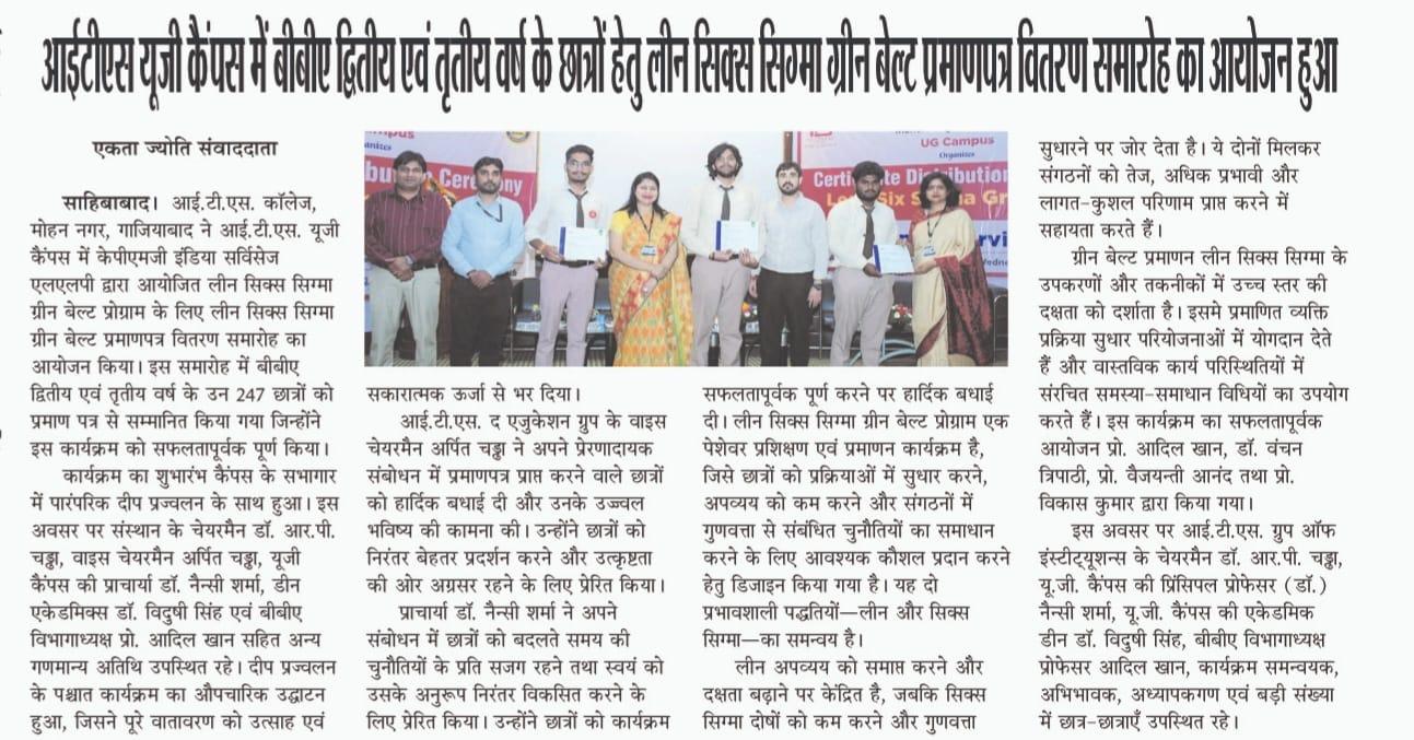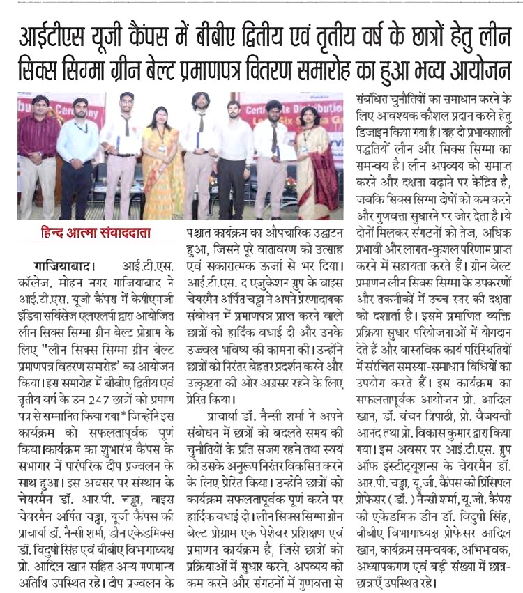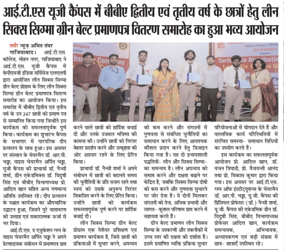 Lean Six Sigma Green Belt Certificate Distribution Ceremony for the students of BBA -II and III year
