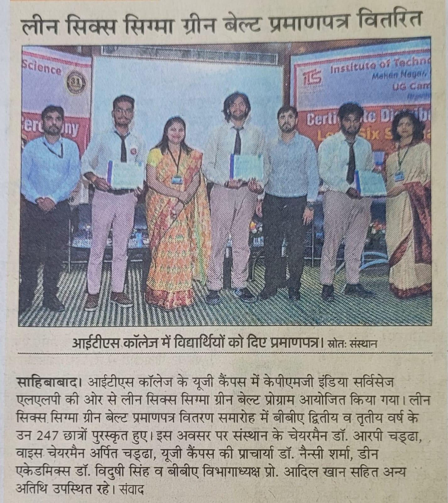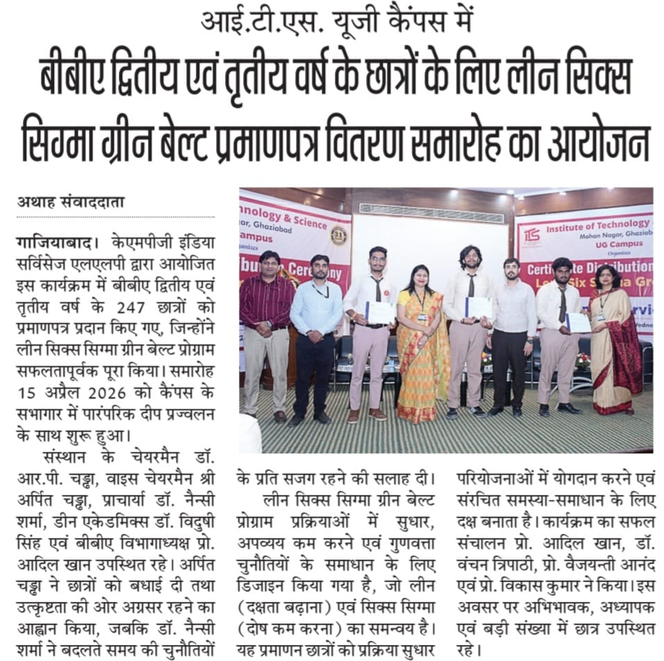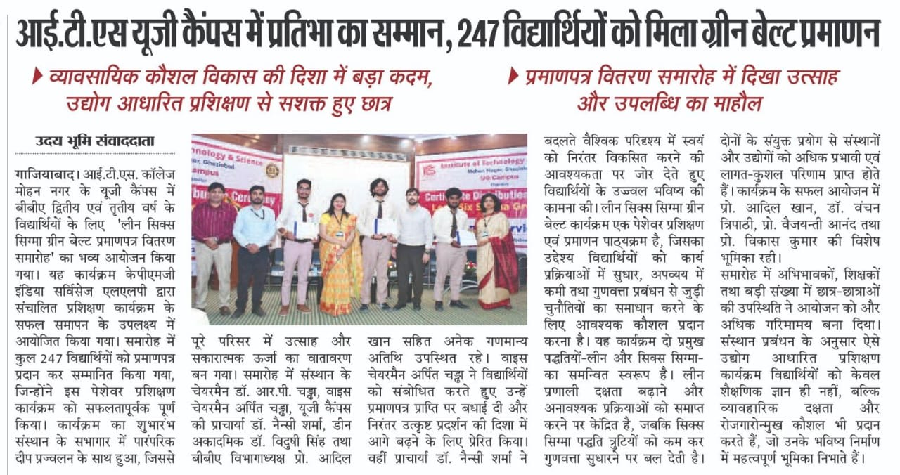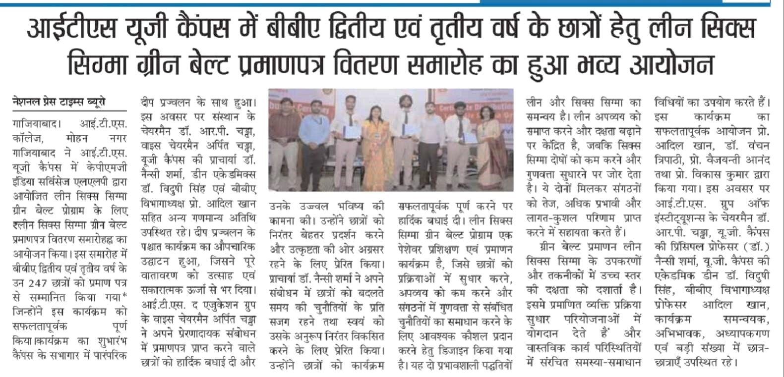 Lean Six Sigma Green Belt Certificate Distribution Ceremony for the students of BBA -II and III year