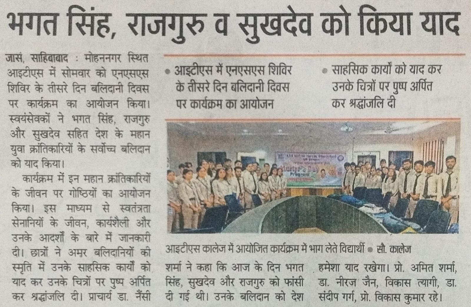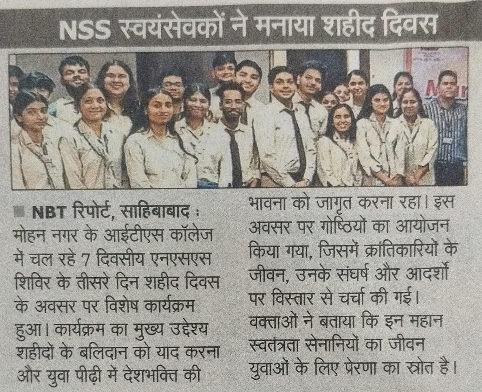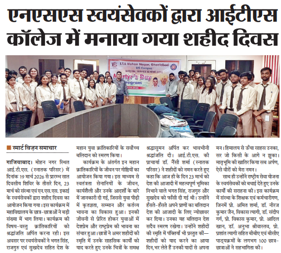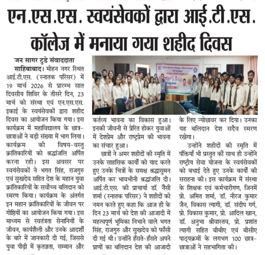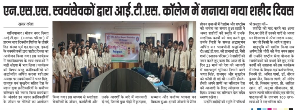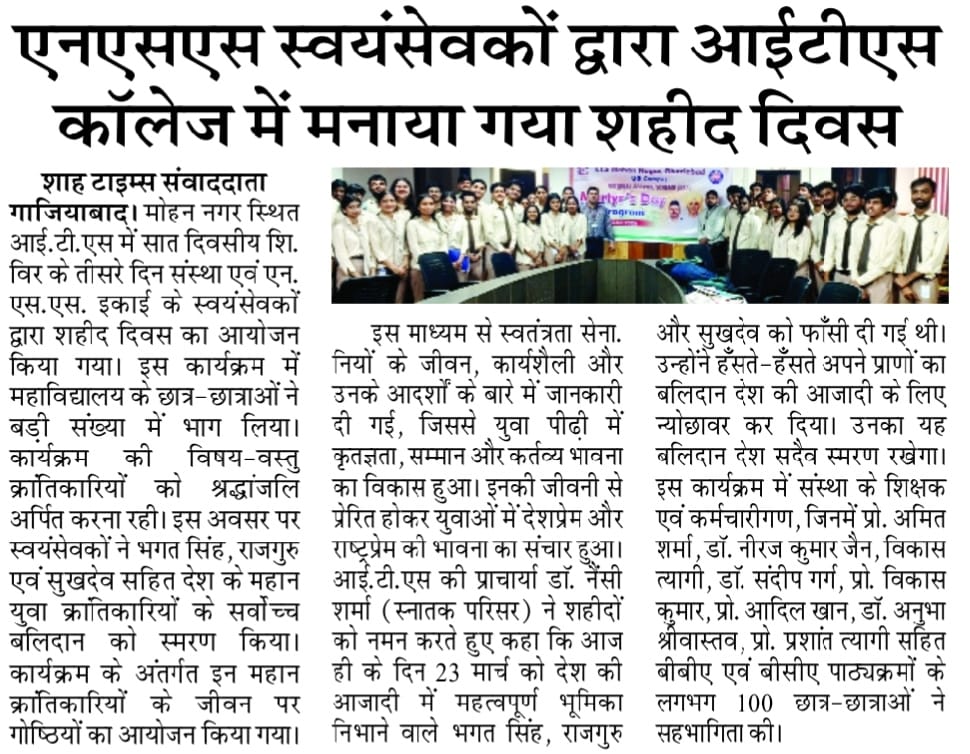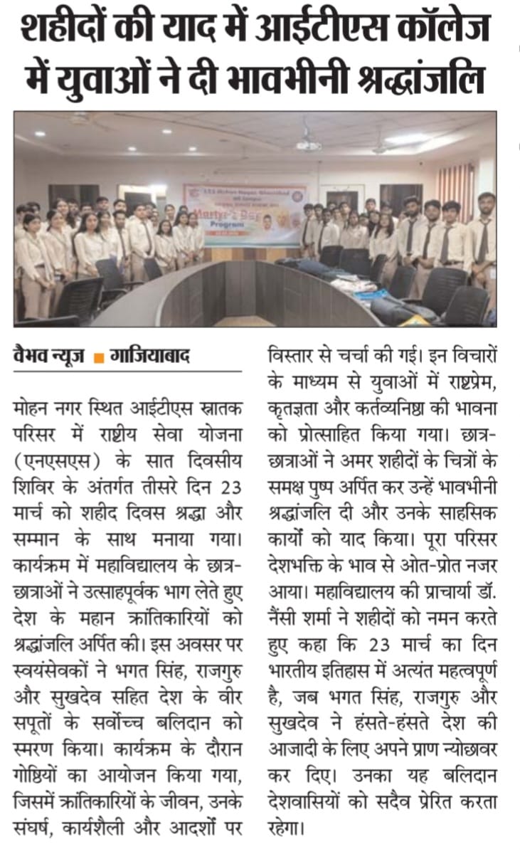 ITS UG Campus Mohan Nagar Martyrs' Day Program organized by NSS Unit.