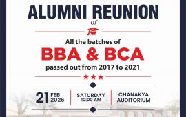 I.T.S UG Campus, Mohan Nagar Ghaziabad proudly invites all BBA & BCA alumni (2017–2021 pass out batches) to an Alumni Reunion on 21st February 2026 | 10:00 AM | Chanakya Auditorium.