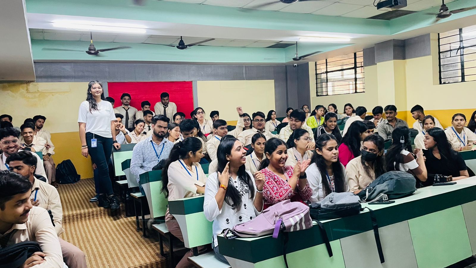 The alumni shared their personal experiences, career learnings, and challenges faced during and after their time at I.T.S. The speakers highlighted the importance of discipline, networking, extracurricular involvement, and continuous learning. Interactive Q&A session was held where freshers actively engaged with the alumni, seeking guidance on career paths, internships, and overall campus life. The alumni emphasized the value of maintaining strong connections with peers and faculty to enhance both professional and personal development.