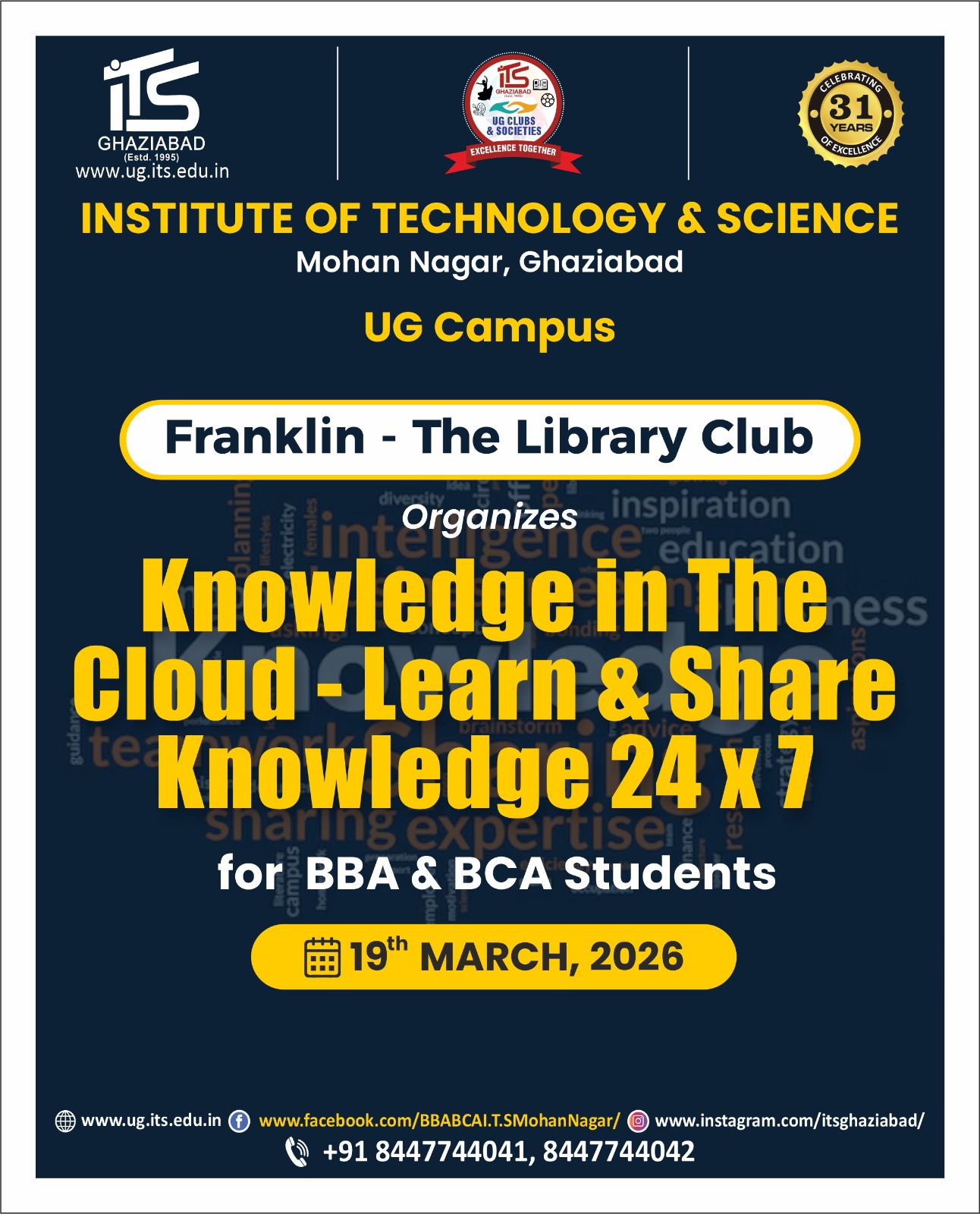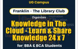 The Library Club “Franklin” is organizing an engaging knowledge-sharing initiative titled “Knowledge in the Cloud – Learn & Share Knowledge 24×7” for BBA and BCA students on 19th March, 2026.