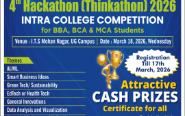 The 4th Hackathon (Thinkathon) 2026 is going to be organized on March 18, 2026, as an intra-college competition for BBA, BCA, and MCA students. The event aims to promote innovation, creativity, and problem-solving skills among students.