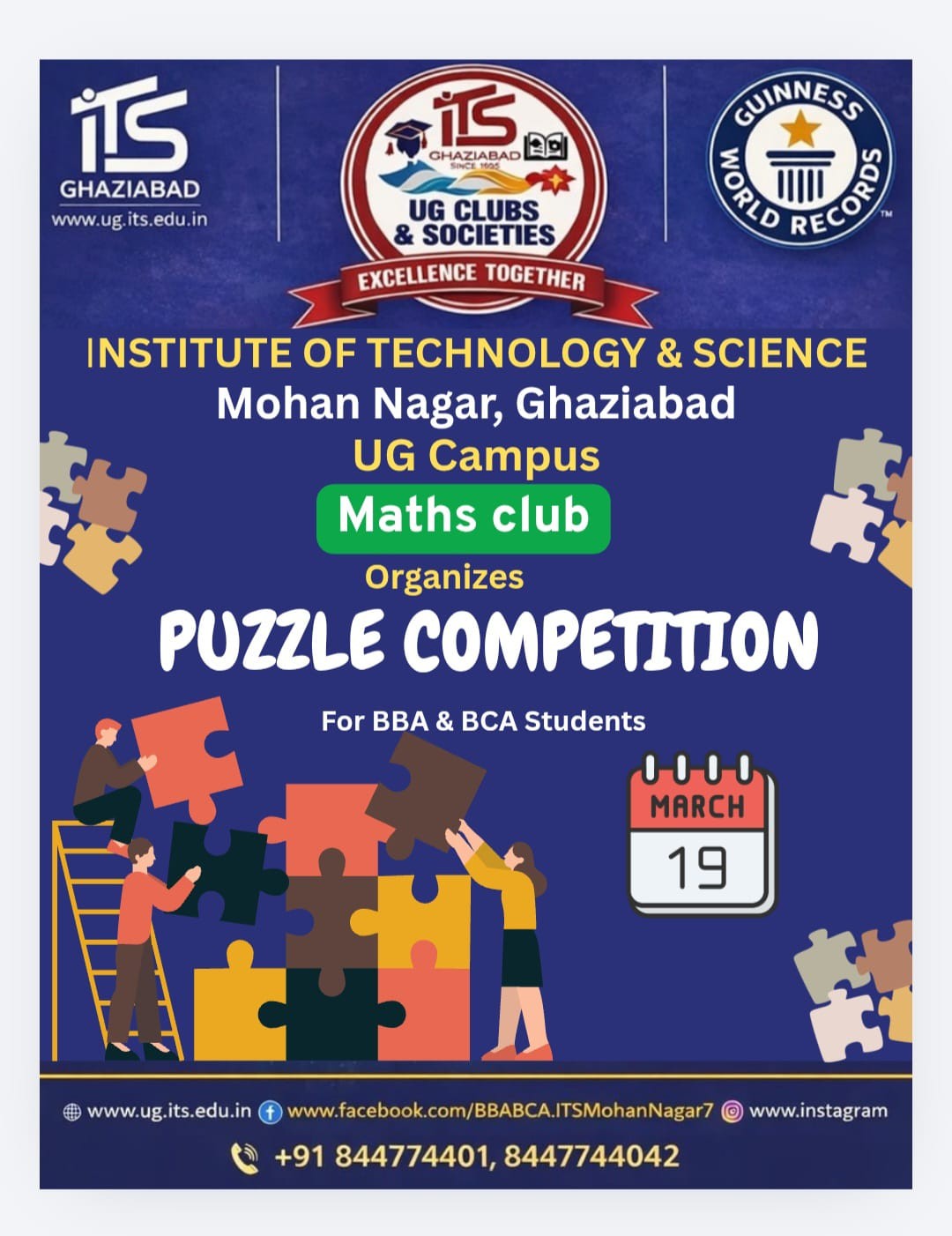 The Maths Club of the UG Campus is set to organize an engaging Puzzle Competition on March 19 for BBA and BCA students. The event aims to enhance logical thinking, problem-solving skills, and teamwork among participants, promising a fun and intellectually stimulating experience.