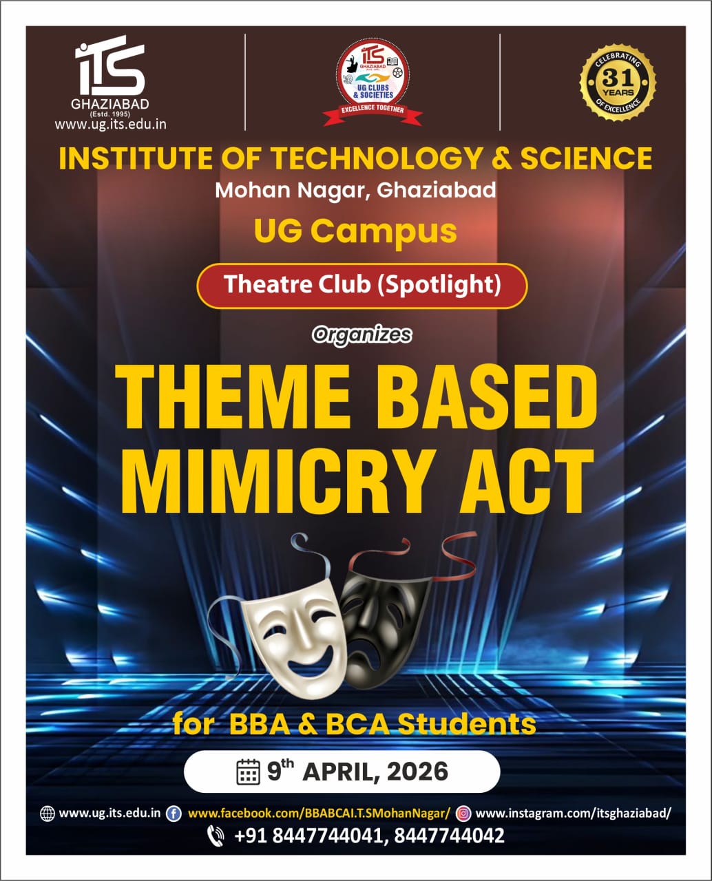The Theatre Club (Spotlight) is organizing a “Theme Based Mimicry Act” on 9th April 2026 for BBA and BCA students. The event aims to enhance creativity, confidence, and stage presence through fun and expressive performances.